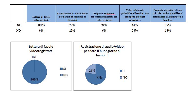 Molte insegnanti hanno inoltre lavorato, al pari delle educatrici, alla promozione delle autonomie, e hanno proposto attività utili a favorire apprendimenti attraverso esperienze concrete.